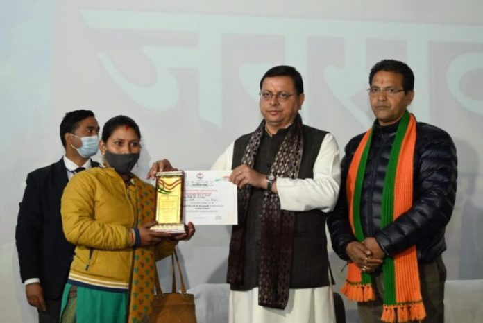 देहरादून: मुख्यमंत्री पुष्कर सिंह धामी ने सोमवार को नगर पालिका परिषद हॉल ,नई टिहरी में आयोजित ‘जनसंवाद’ “आपका सुझाव हमारा संकल्प” कार्यक्रम में प्रतिभाग किया । इस दौरान मुख्यमंत्री ने विभिन्न विकासखण्डों के कुल 18 ग्राम प्रधानों को मनरेगा, एन.आर.एल.एम., स्वयं सहायता समूहों में कार्यों एवं ग्राम स्तर पर उत्कृष्ट कार्य किए जाने पर सम्मानित किया। मुख्यमंत्री ने पंचायत प्रतिनिधियों से सीधे तौर पर संवाद किया व उनकी समस्याएं सुनी। उन्होंने कहा पंचायत प्रतिनिधि गांव में आम जनता से सीधे तौर पर जुड़े होते हैं, जिसके फलस्वरूप प्रधानों के सुझाव काफी महत्वपूर्ण होते हैं।