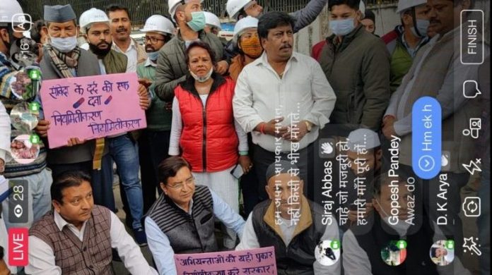 देहरादून: लोक निर्माण विभाग में विभागीय संविदा पर कार्यरत कनिष्ठ अभियन्ताओं ने रविवार को अपनी नियमितीकरण की मांग को लेकर गांधी पार्क से मुख्यमंत्री आवास का घेराव करने के लिए कूच किया गया।